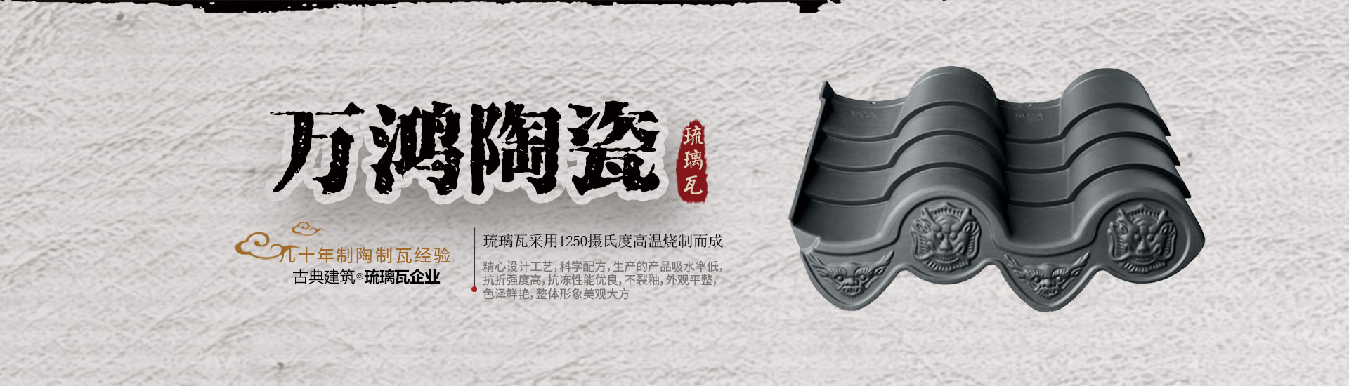 宜興市萬(wàn)鴻陶瓷有限公司是國(guó)內(nèi)生產(chǎn)古建琉璃瓦企業(yè),也是宜興市琉璃瓦行業(yè)龍頭骨干企業(yè)。琉璃瓦采用1250攝氏度高溫?zé)贫桑咀浣?jīng)濟(jì)發(fā)達(dá)的宜興市丁山鎮(zhèn),臨近寧杭高速公路、新長(zhǎng)鐵路、錫宜高速和104國(guó)道,交通十分便利。 萬(wàn)鴻陶瓷擁有幾十...